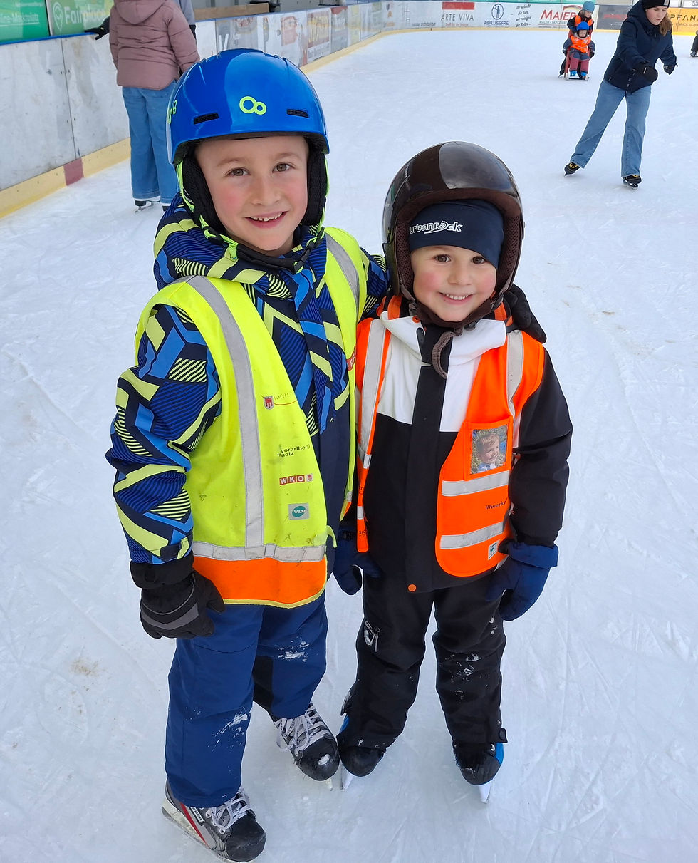 Letzten Mittwoch packten wir zur großen Pause unseren Rucksack mit den Eislaufschuhen und fuhren mit dem Bus zum Bahnhof. Von dort liefen wir zum Eislaufplatz. Die Kindergärtner waren auch schon dort. Gemeinsam fuhren wir viele Runden auf dem Eis und hatten viel Spaß.
